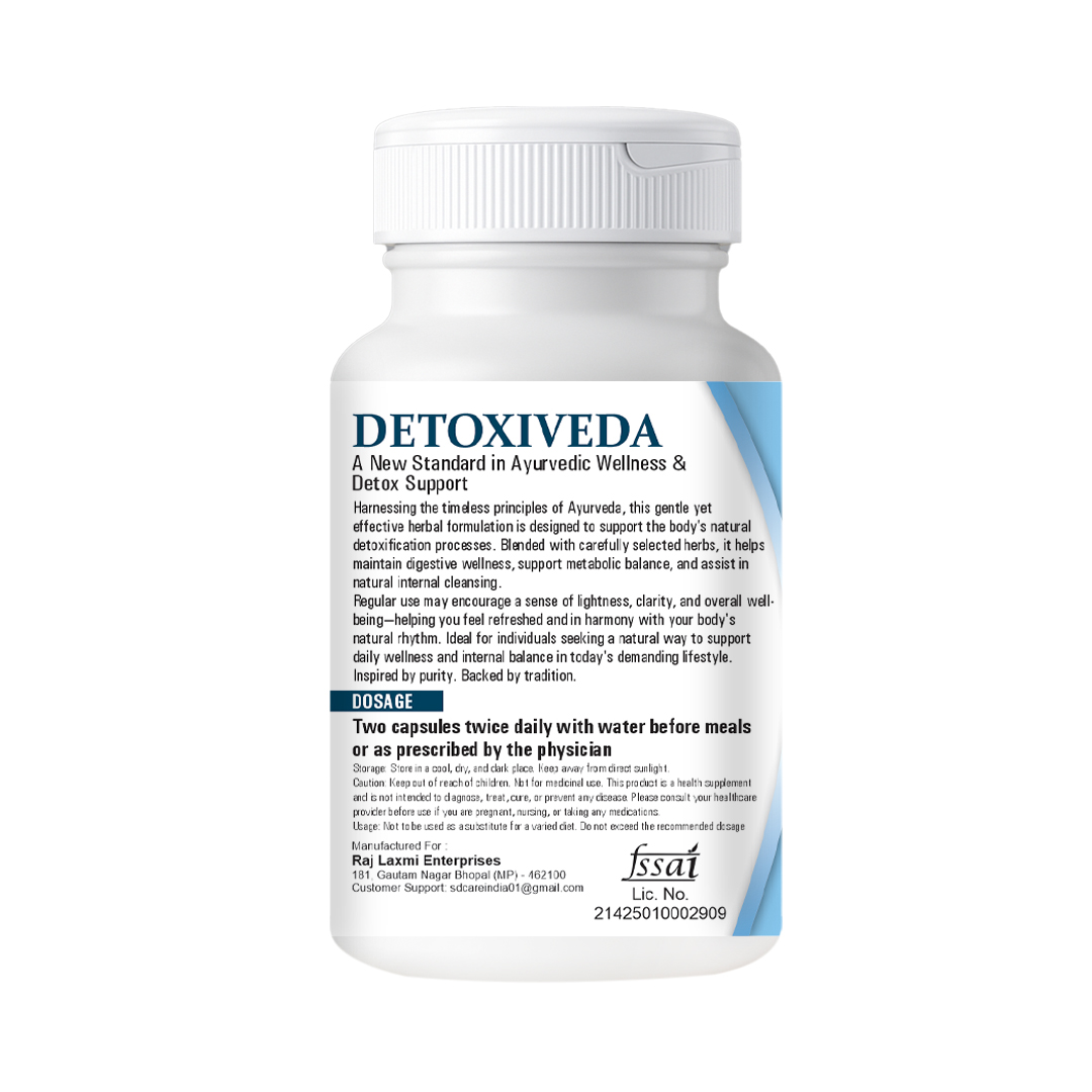 Detoxiveda by SD Ayurveda is a natural Ayurvedic detox formulation that supports liver health, toxin removal, and digestive cleansing. Made with traditional herbal ingredients, it helps purify the body, improve metabolism, and promote overall internal wellness.