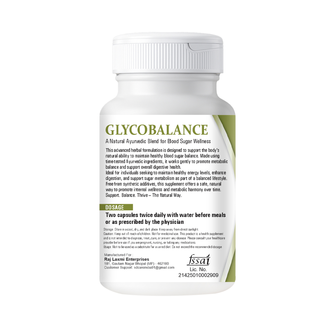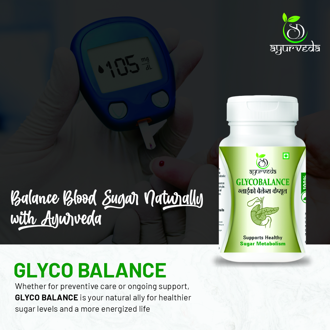 Glyco Balance by SD Ayurveda is a carefully formulated Ayurvedic blend designed to support healthy blood sugar management and metabolic balance. Rooted in classical Ayurvedic science, this herbal formulation helps regulate glucose levels, support pancreatic function, and promote overall metabolic health.