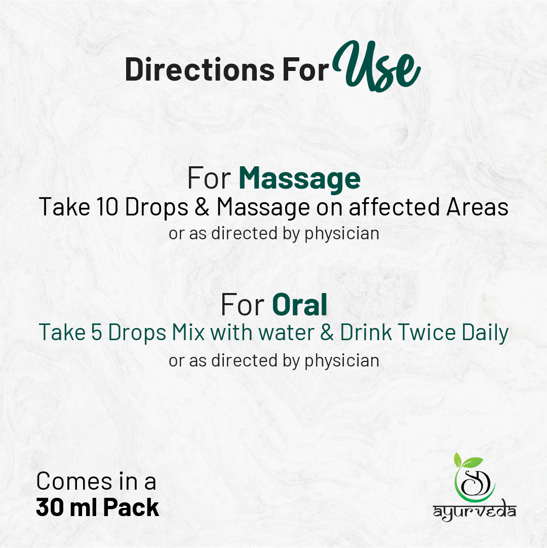Kaya Ease Joint Wellness Oil by SD Ayurveda is a carefully formulated Ayurvedic pain relief oil designed to support healthy joints, muscles, and connective tissues. Rooted in classical Ayurvedic science, this medicated oil blends potent herbal extracts known for their anti-inflammatory, analgesic, and muscle-relaxing properties.